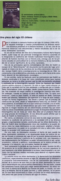 Autoras - Stabili, María Rosaria - Sentimiento aristocrático, elites chilenas frente al espejo (1860-1960)