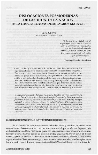 Dislocaciones posmodernas de la ciudad y la nación en La casa en llamas de Milagros Mata Gil [artículo] Lucía Guerra.