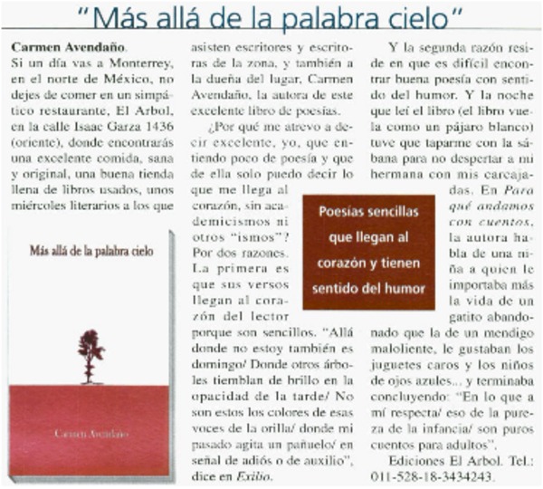 Más allá de la palabra cielo - Avendaño, Carmen - Autoras