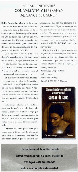 Cómo enfrentar con valentía y esperanza al cáncer de seno". [artículo]