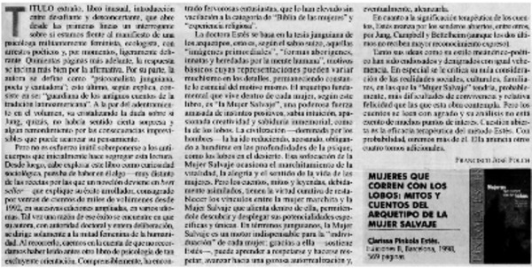 Mujeres que corren con los Lobos : mitos y cuentos del Arquetipo de la mujer salvaje [artículo] Francisco José Folch Verdugo.