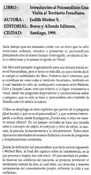 Introducción al psicoanálisis: una visita al territorio freudiano - Muñoz Salas, Judith - Autoras