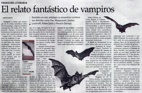 El Relato fantástico de vampiros [artículo] Ignacio Valente.