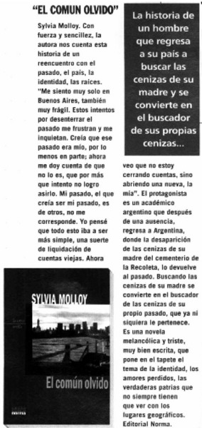 Autoras - Molloy, Sylvia - Común olvido