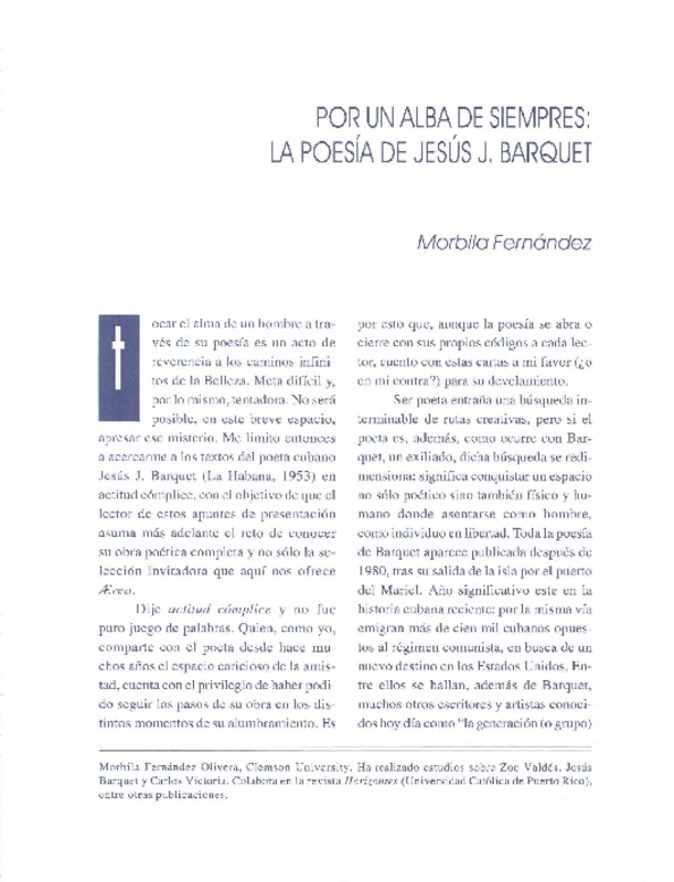 Autores cubanos - Autoras - Barquet, Jesús J. - Fernández, Morbila - Por un alba de siempres : la poesía de Jesús J. Barquet