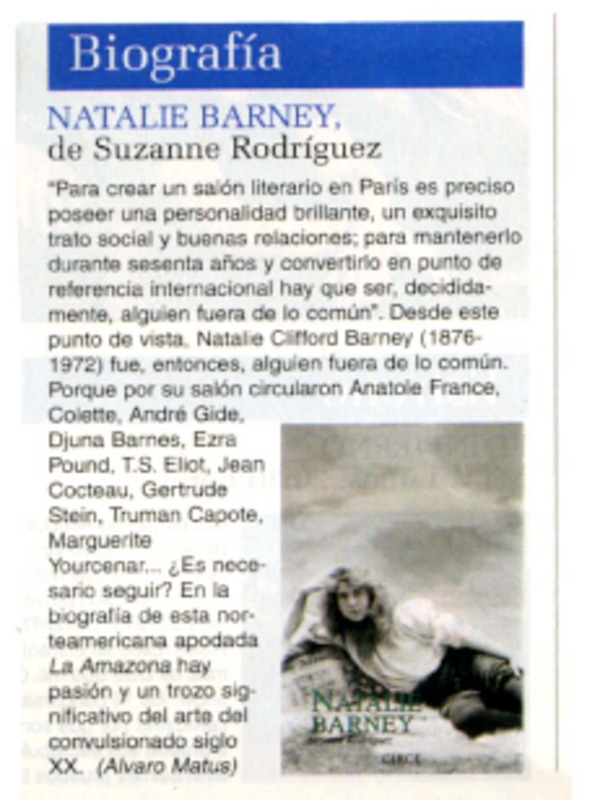 Natalie Barney [artículo] Alvaro Matus.