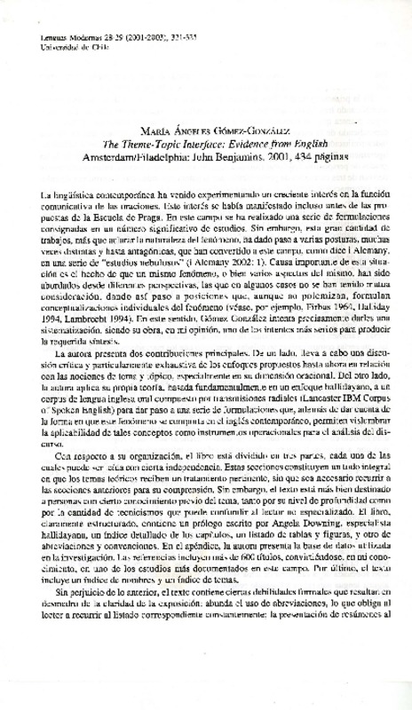 Theme-topic interface: evidence from english - Gómez-González, María Angeles - Autoras