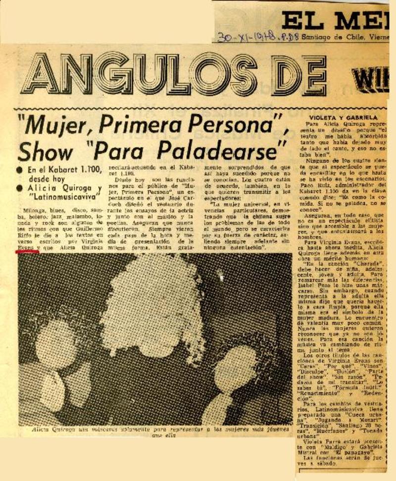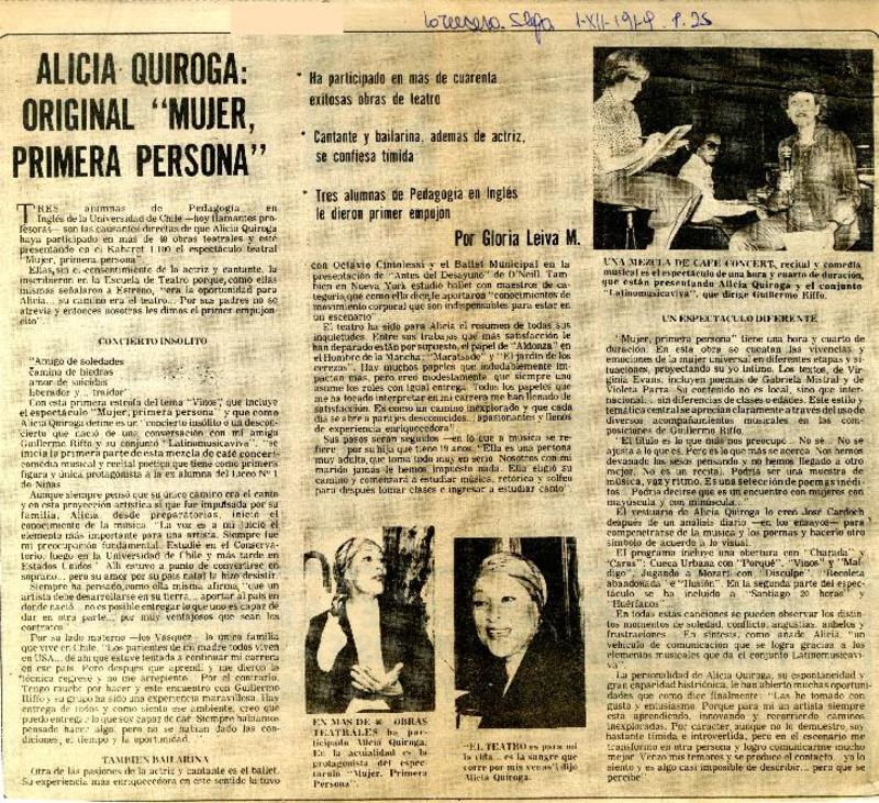 Alicia Quiroga: original "Mujer, primera persona". [artículo]