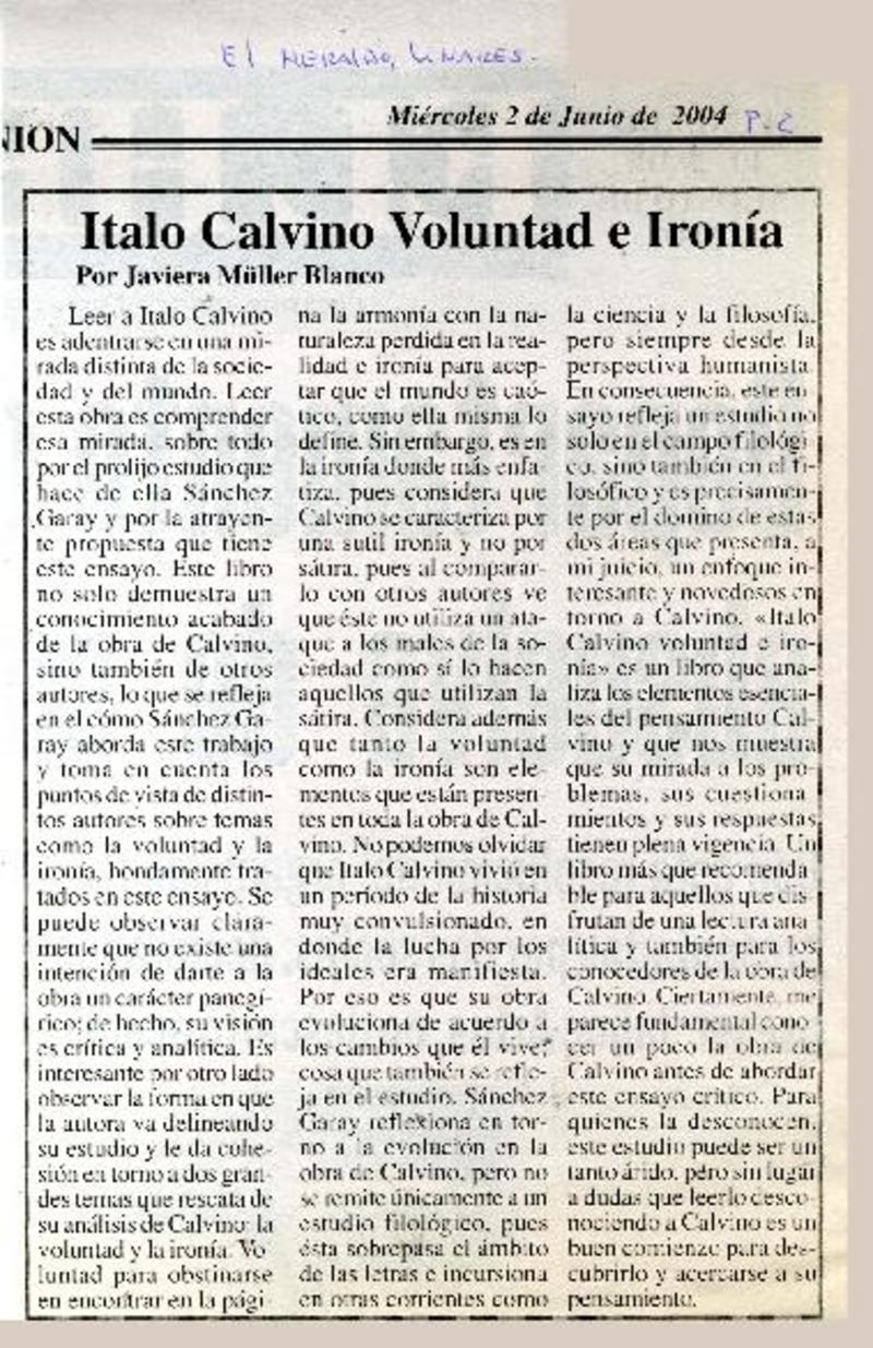 Italo Calvino voluntad e ironía [artículo] Javiera Müller Blanco.