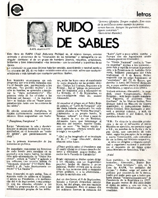Autores chilenos - Aldunate Phillips, Raúl - Ruido de sables
