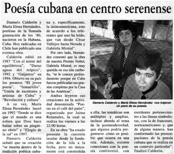 Poesía cubana en centro serenense. [artículo]