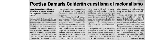 Entrevistas - Calderón, Damaris - Autoras cubanas - Sílabas, Ecce Homo