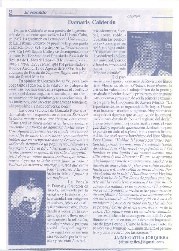 Damaris Calderón [artículo] Jaime Gatica Jorquera.
