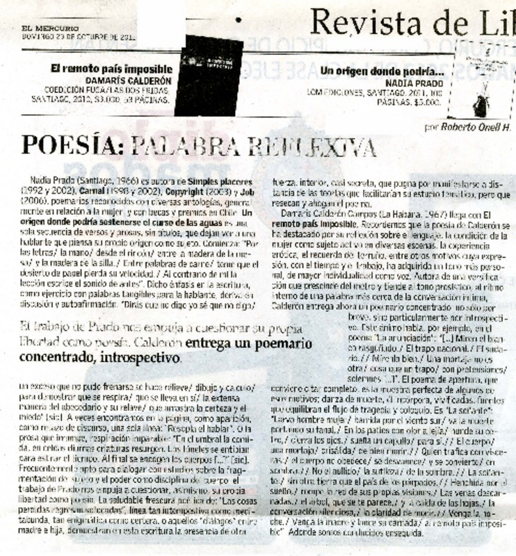 Poesìa, palabra reflexiva [artículo] Roberto Onell H.