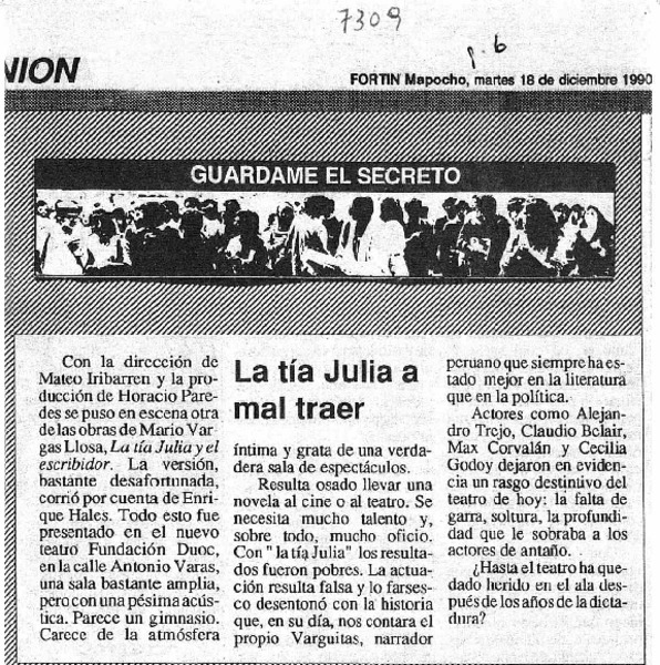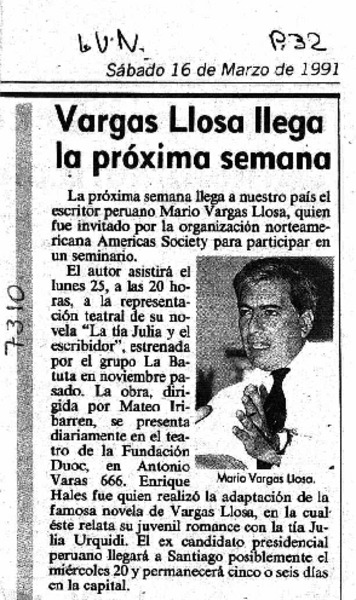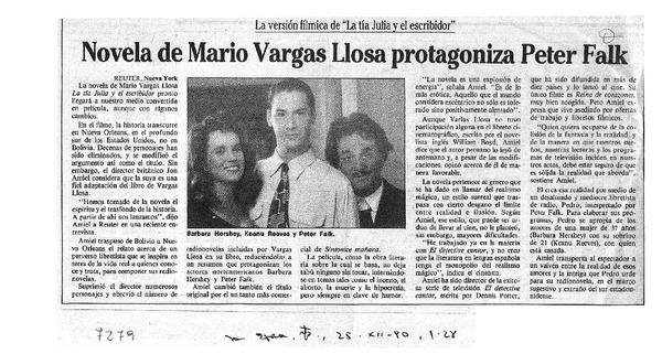 Novela de Mario Vargas Llosa protagoniza Peter Falk. [artículo]