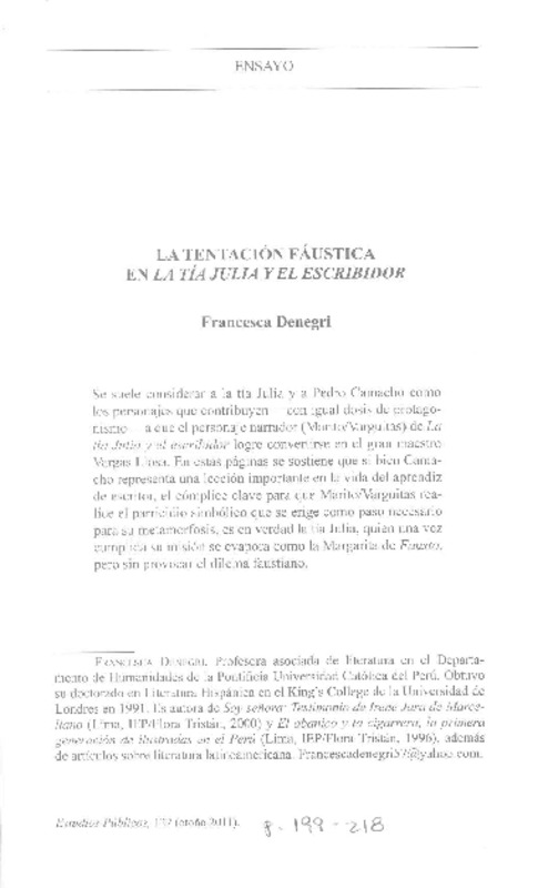 La tentación faústica en La Tía Julia y el escribidor [artículo] Francesaca Denegri.