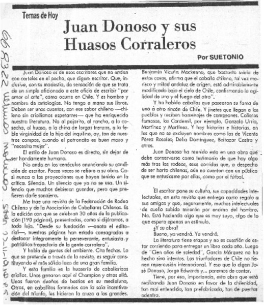Juan Donoso y sus huasos corraleros [artículo] Suetonio.