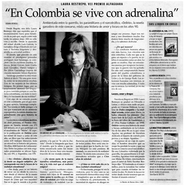 "En Colombia se vive con adrenalina" [artículo] Susana Reinoso.