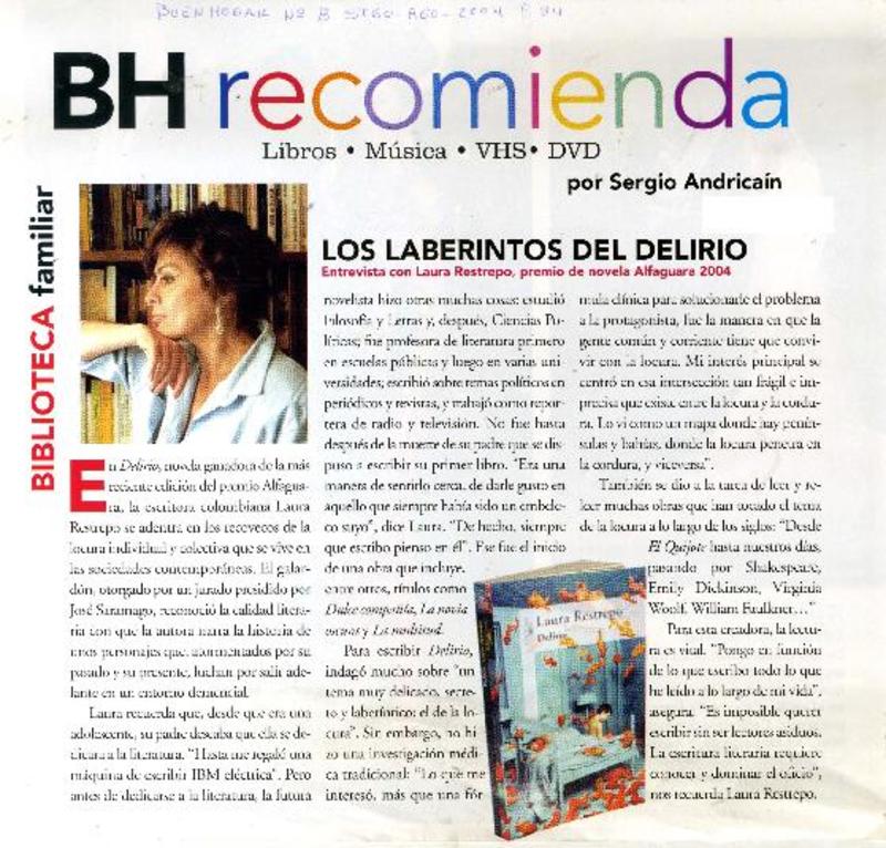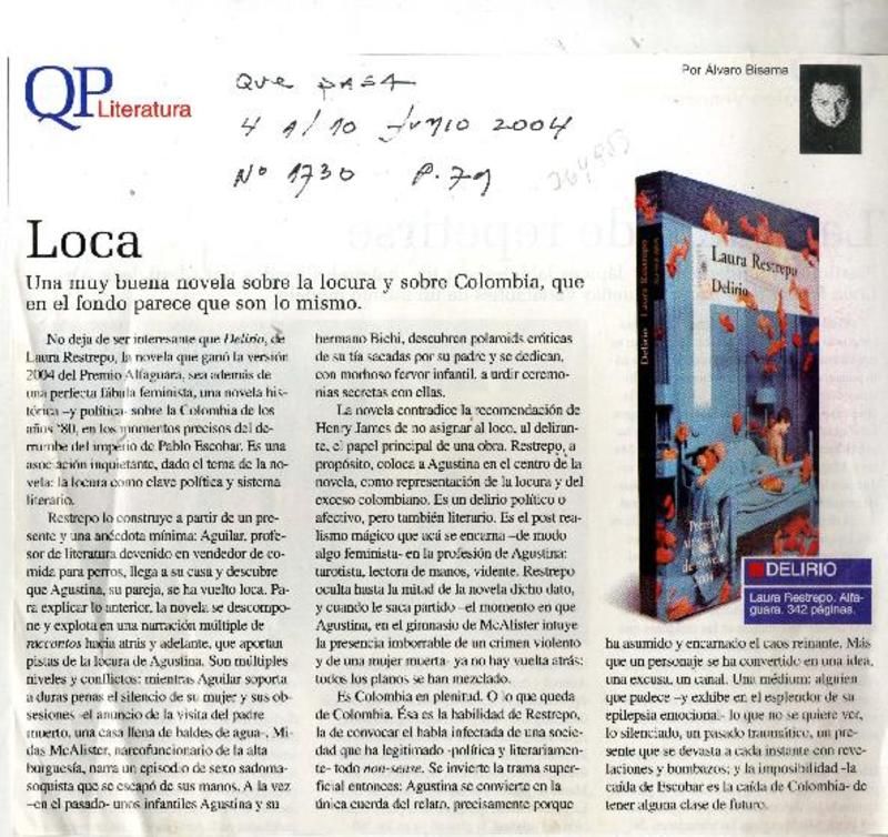 Entrevistas - Autoras colombianas - Delirio - Restrepo, Laura