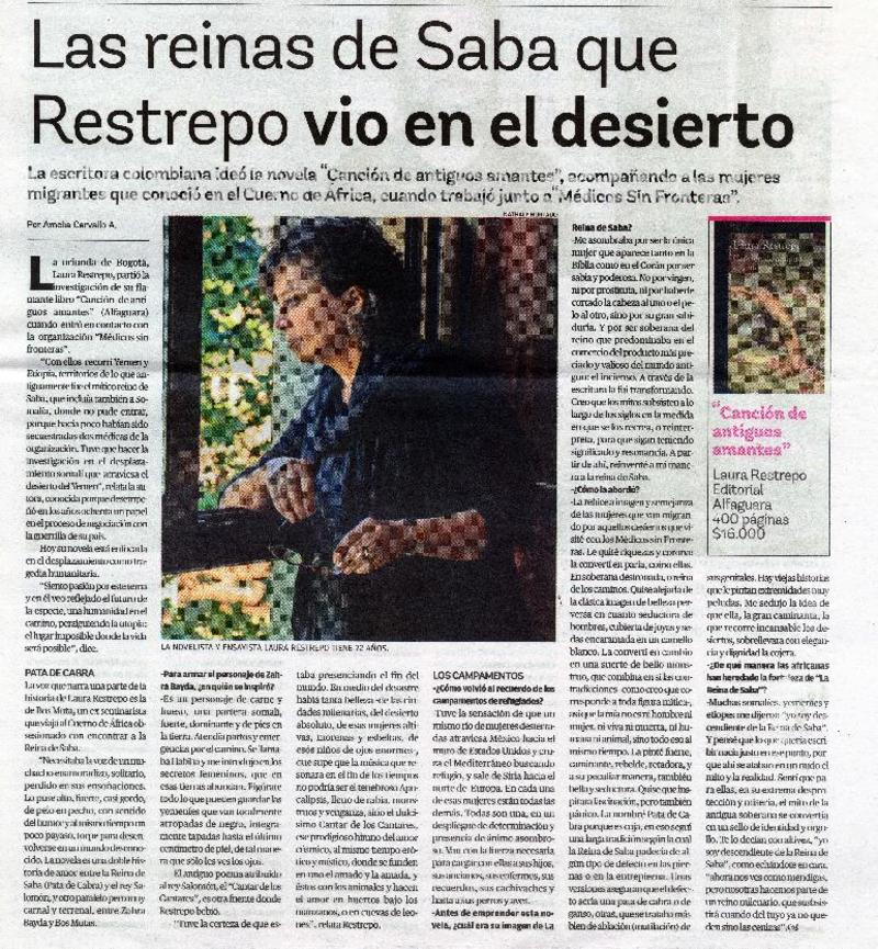 Las reinas de Saba que Restrepo vio en el desierto [entrevista] [artículo] : Por Amelia Carvallo A.