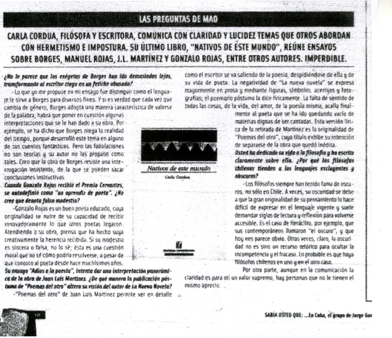 Entrevistas - Cabos sueltos - Cordura, Carla - Autoras chilenas