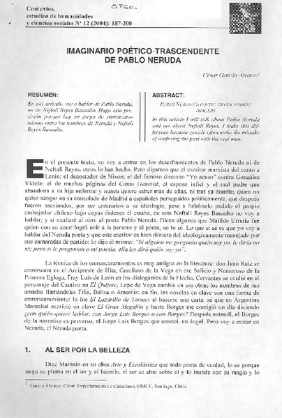 Imaginario poético-trascendente de Pablo Neruda [artículo]César García Alvarez.