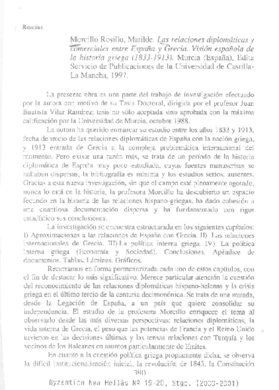 Las relaciones diplomáticas y comerciales entre España y Grecia. Visión española de la historia griega (1833-1913) [artículo] César García Alvarez.