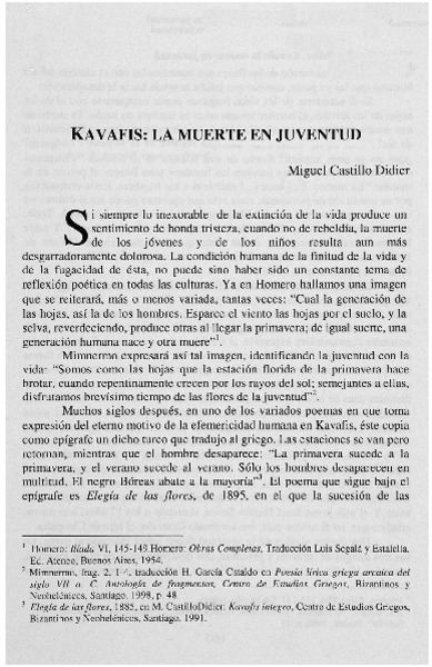 Cavafy, Constantine - Kavafis : La muerte en juventud - Castillo Didier, Miguel - Autores chilenos