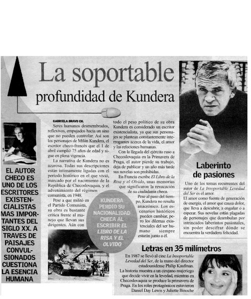 La soportable profundidad de Kundera [artículo] Gabriela Bravo Ch.