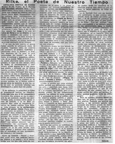 Rilke, el poeta de nuestro tiempo [artículo] Ignacio Valente.