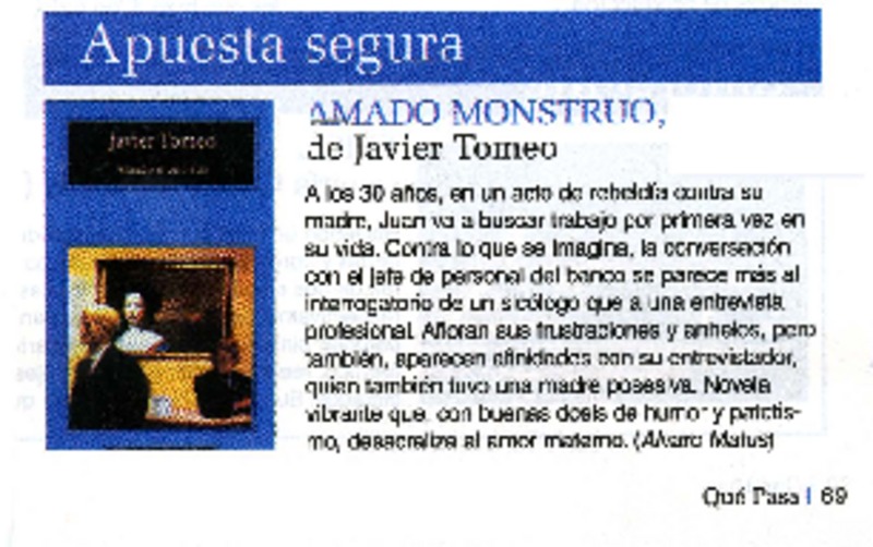 Autores españoles - Tomeo, Javier - Amado monstruo