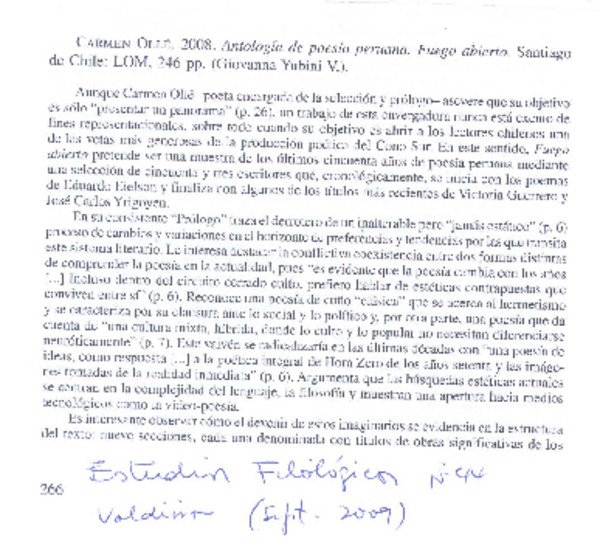 Antología de la poesía peruana. Fuego abierto [artículo] Giovanna Yubini V.