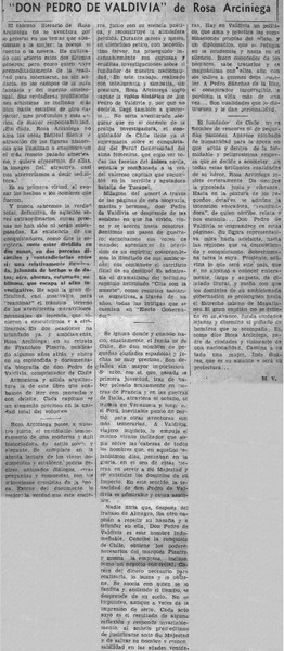 Don Pedro de Valdivia" de Rosa Arciniega [artículo] M.V.