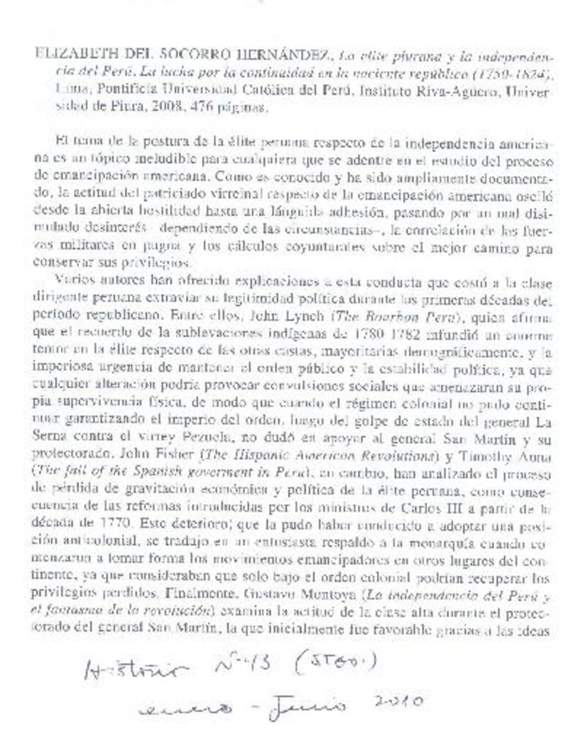 Autoras peruanas - Hernández, Elizabeth del Socorro - Elite piurana y la independencia del Perú