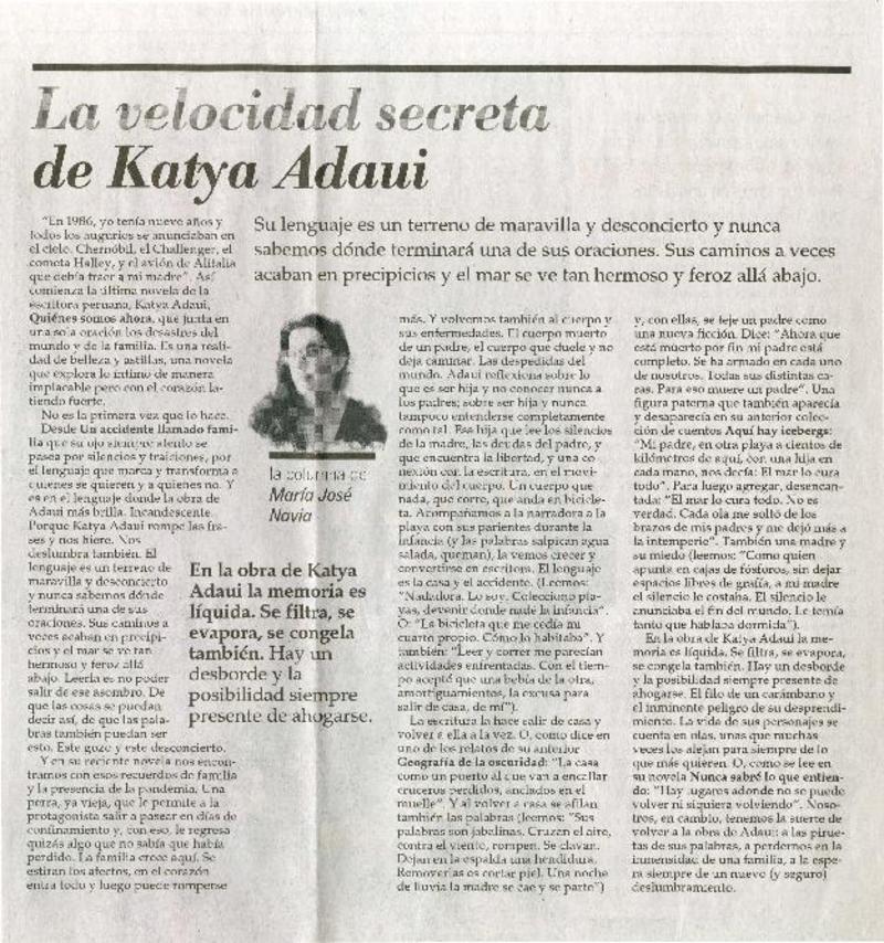 La velocidad secreta de Katya Adaui [artículo] María José, Navia.