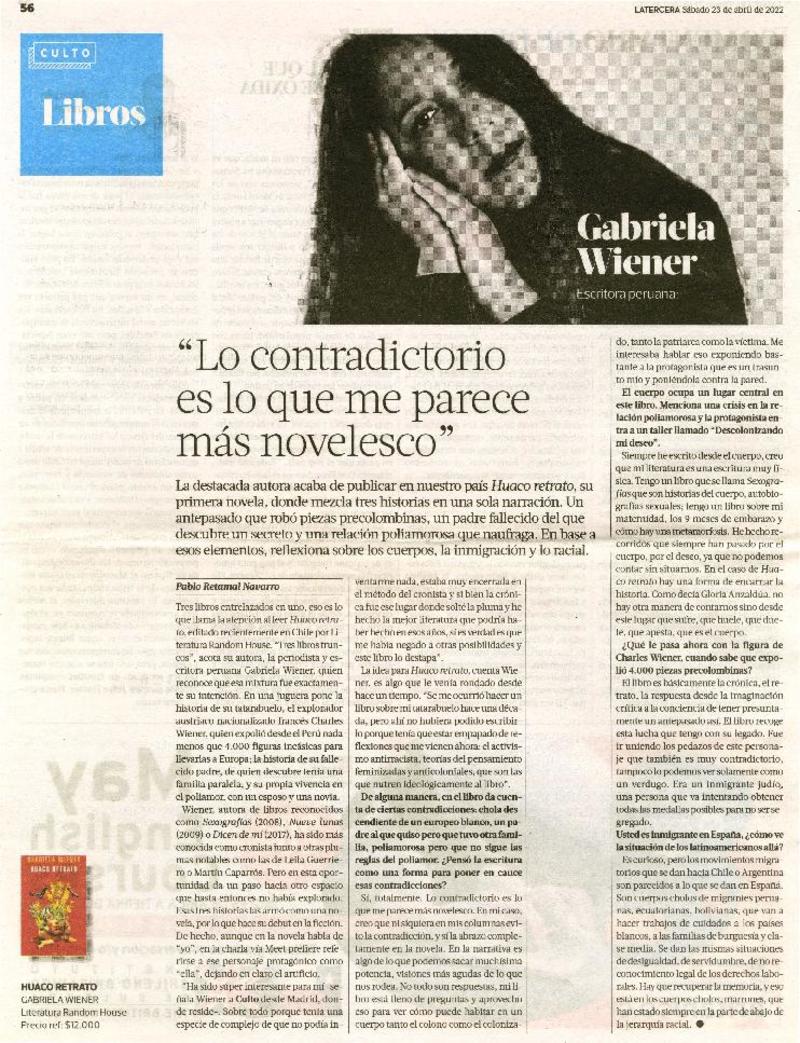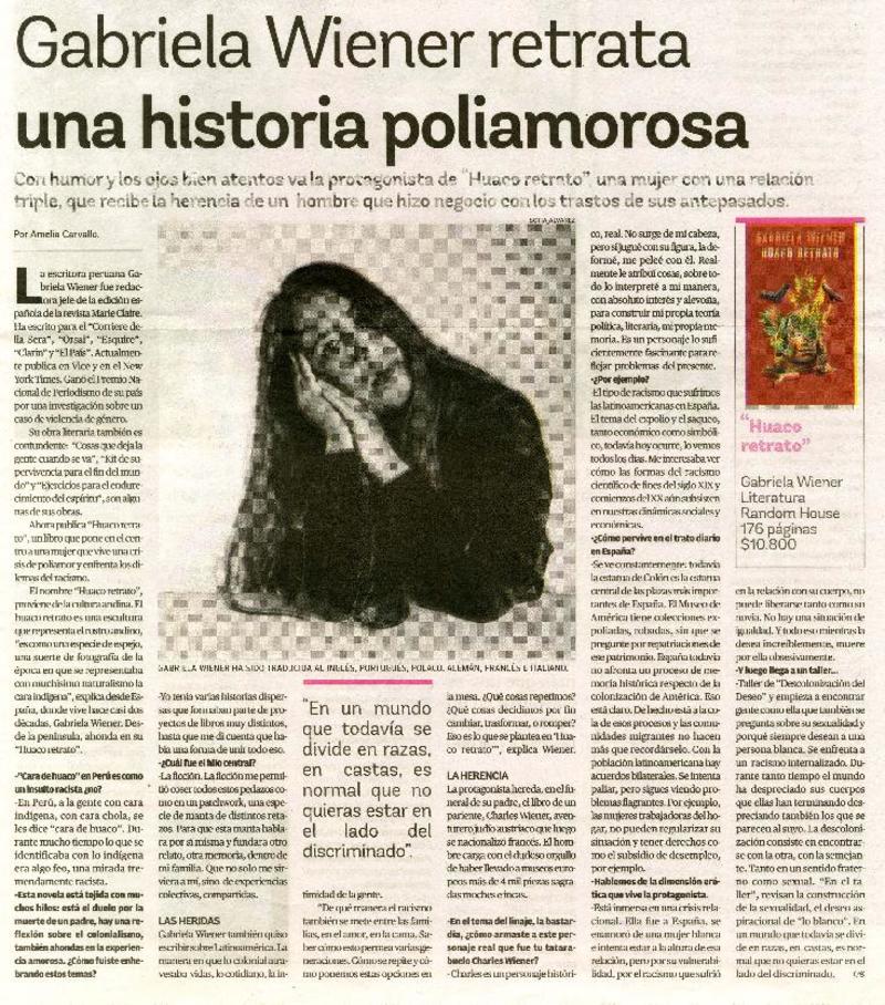 Entrevistas - Autoras peruanas - Wiener, Gabriela - Huaco retrato