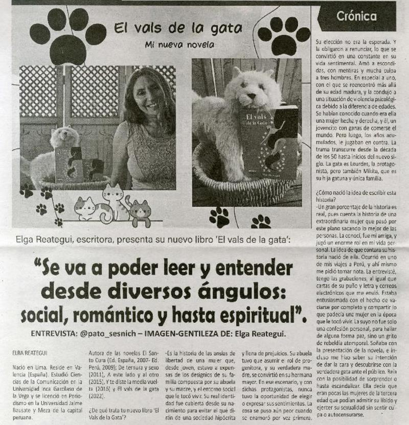 Entrevistas - Autoras peruanas - Reategui, Elga - "El vals de la gata"