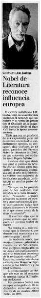 J.M. Coetzee es el nuevo Nobel de Literatura. [artículo]