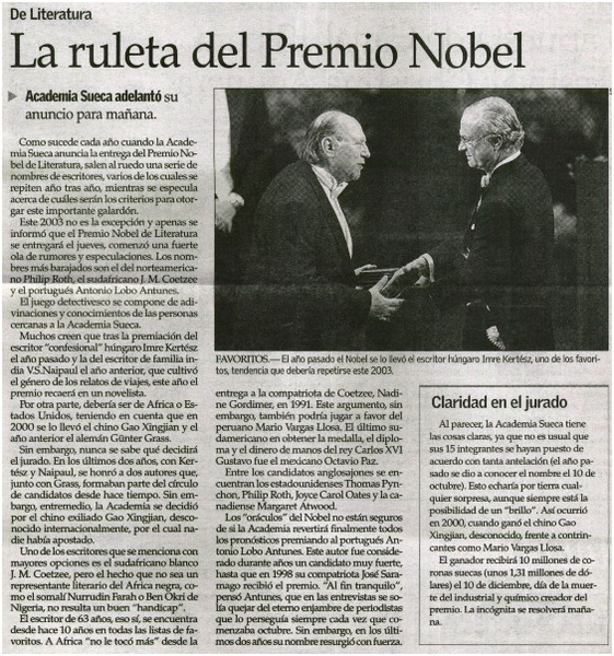 La Ruleta del Premio Nobel. [artículo]