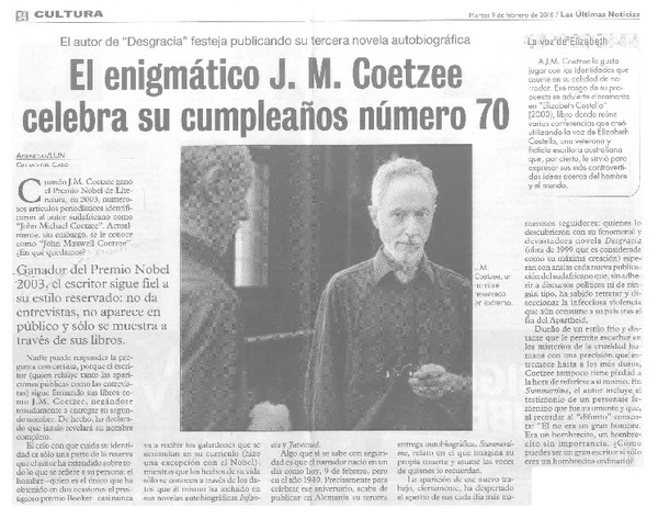 El enigmático J. M. Coetzee celebra su cumpleaños número 70 [artículo].