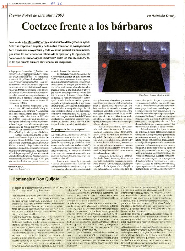 Coetzee frente a los bárbaros [artículo] Marie Luise Knott.