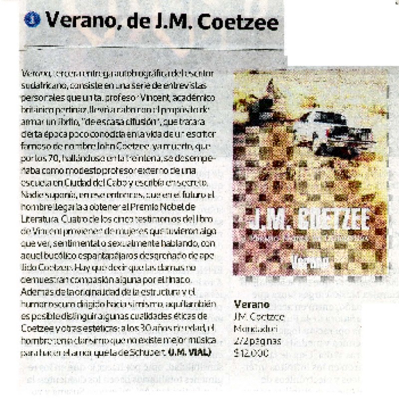 Coetzee a flote [artículo] José Ignacio Silva