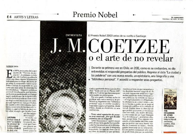 J.M. Coetzee o el arte de no revelar [artículo] Patricio Tapia