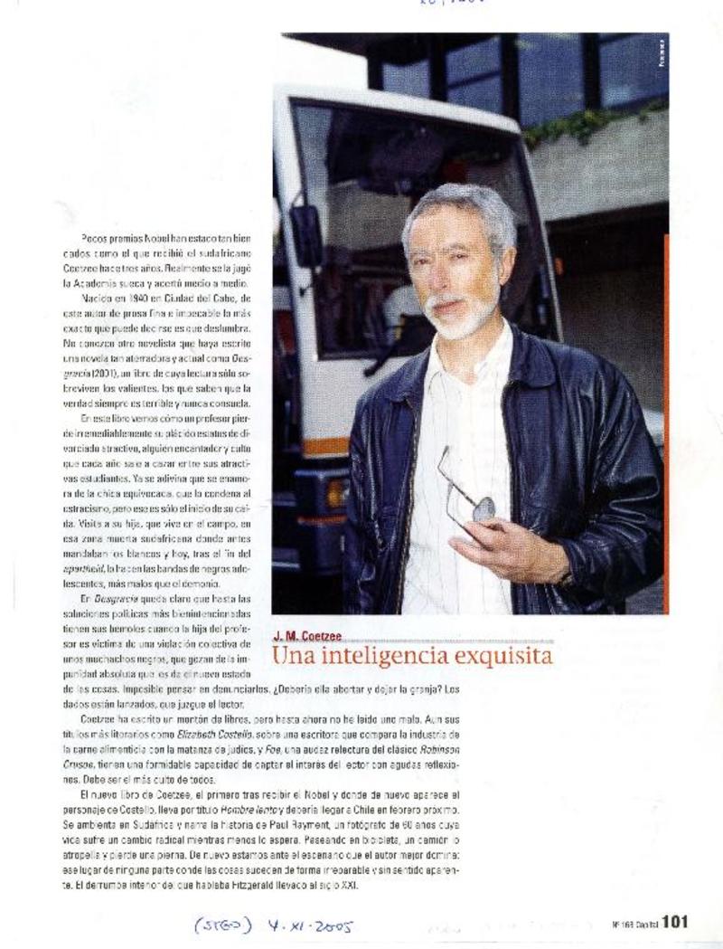 J.M. Coetzee. Una inteligencia exquisita [artículo]