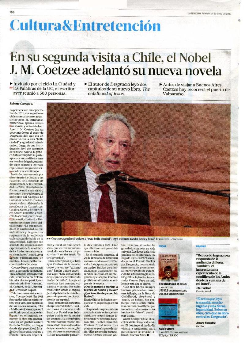 En su segunda visita a Chile, el Nobel J.M. Coetzee adelantó su nueva novela [artículo] Roberto Careaga C.