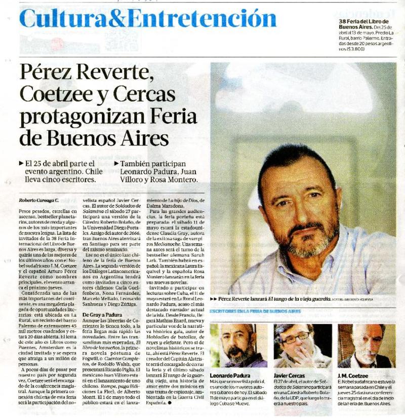 Pérez Reverte, Coetzee y Cercas protagonizan Feria de Buenos Aires [artículo] Roberto Careaga C.