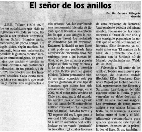 Tolkien arrasa entre los jóvenes [artículo] ENC.