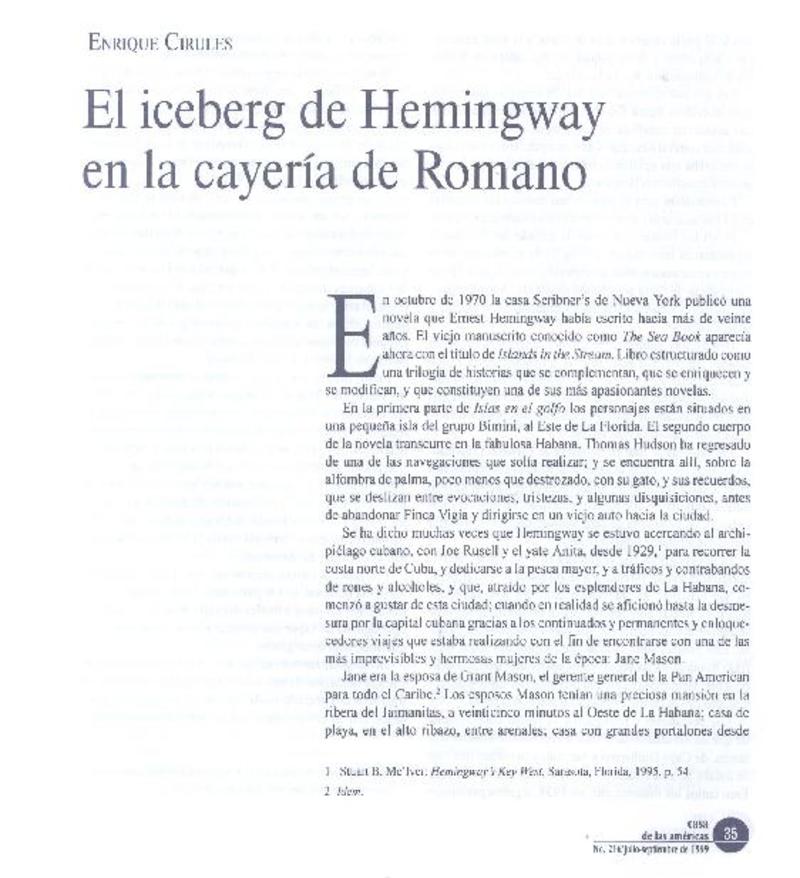 El iceberg de Hemingway en la cañería de Romano [artículo] Enrique Cirules.