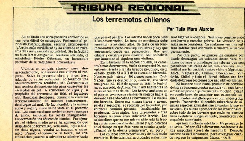 Los terremotos chilenos [artículo] Tulio Mora Alarcón.
