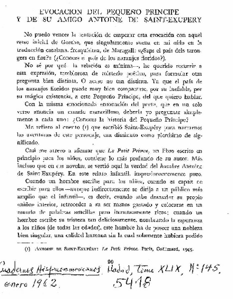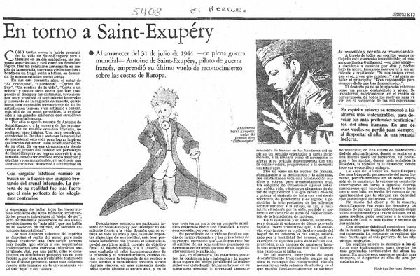 En torno a Saint-Exupéry [artículo] Rodrigo Serrano Bombal.